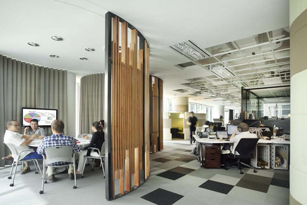 2、屏風在辦公空間中第二個作用就是可以使用其進行功能區(qū)域的劃分,屏風一是可以起到分隔空間的作用同時由于隔斷自身的美感、獨特和文化對于整個辦公環(huán)境具有很好的美化和氛圍以及風格氣息的烘托渲染作用。